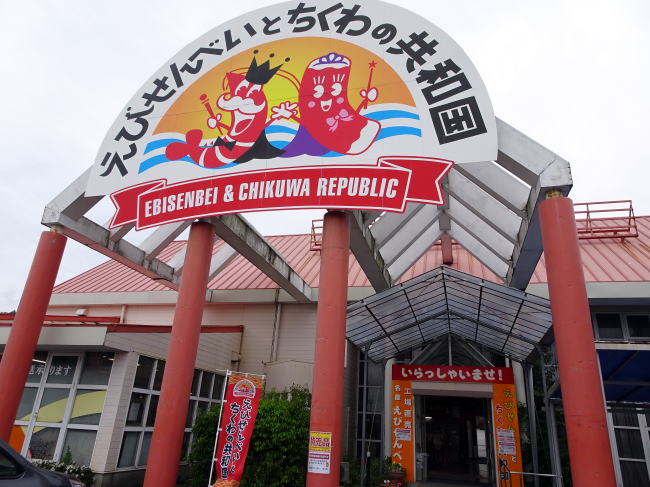 赤坂宿を過ぎ、しばらく歩くと県道73号線の高架をくぐります。そして右に進むと、国道1号線沿いにえびせんべいとちくわの共和国があります。
