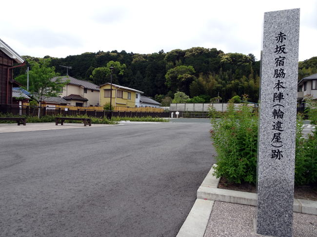 御油の松並木を抜け、赤坂宿へと入りました。写真は東見附跡(ひがしみつけあと)。