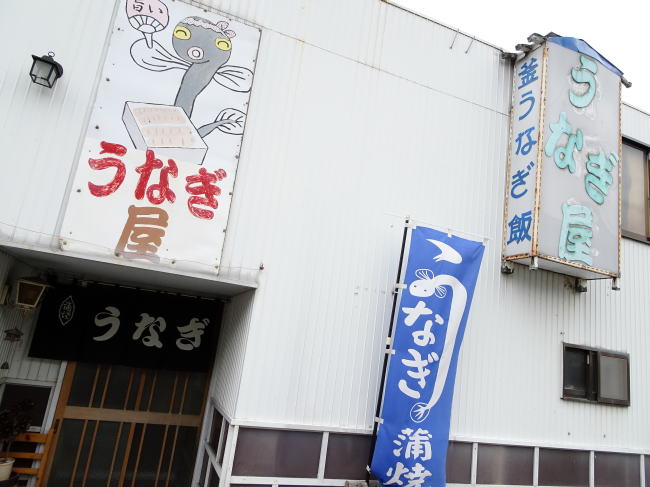 街道を歩いていると発見したうなぎ屋。うなぎがうなぎを焼いてる…