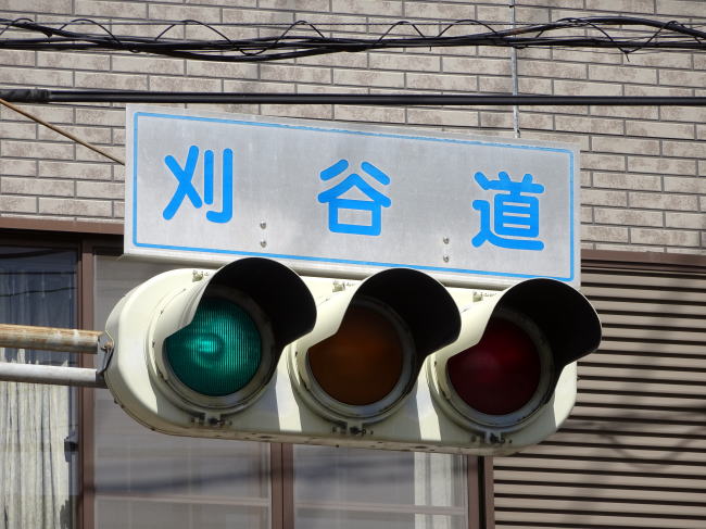 池鯉鮒宿本陣跡の石碑から少し進んだところに信号がありますが、よく見てみると刈谷道という信号名です。