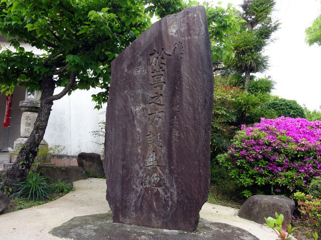 知立神社の近くにある総持寺には、徳川家康の次男・結城秀康の母である、於萬の方誕生地の石碑があります。
