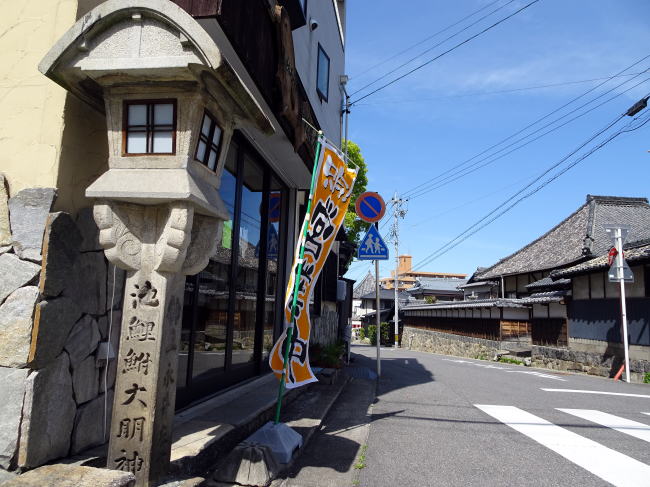 小松屋の脇には池鯉鮒大明神と刻まれた石灯籠があります。大あんまきに気を取られて忘れないようにチェック!