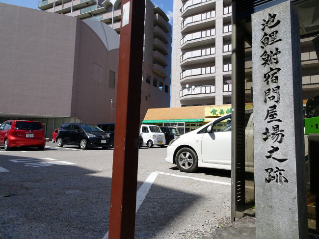 都築屋美廣の裏手辺りにある池鯉鮒宿本陣跡。ここは石碑だけで東海道から1本離れた場所に石碑もあります。