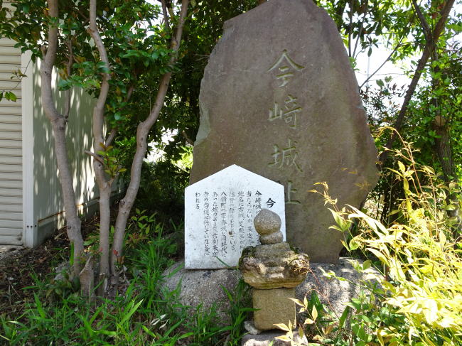 境内には今崎城跡の石碑があり、周辺には古城、足軽の字名が残っています。