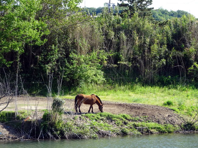 国道1号線の大平橋を渡っていると河原に馬がいました。