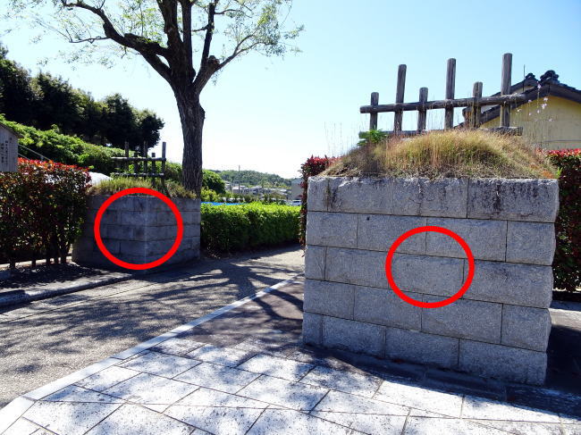 ◯のある部分が棒鼻の石垣。浮世絵にも2つ描かれており、それを現代にほぼ同じ場所に再現してあります。