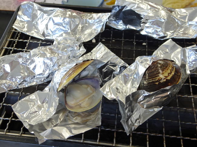 すると数分後、ハマグリがアルミホイルを自力(?)で開けます。こうなると食べ頃です。