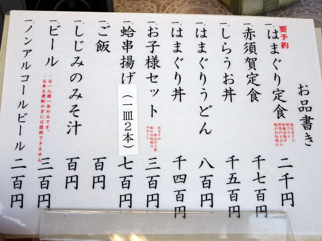 そしてはまぐり定食は、要予約という2点です。