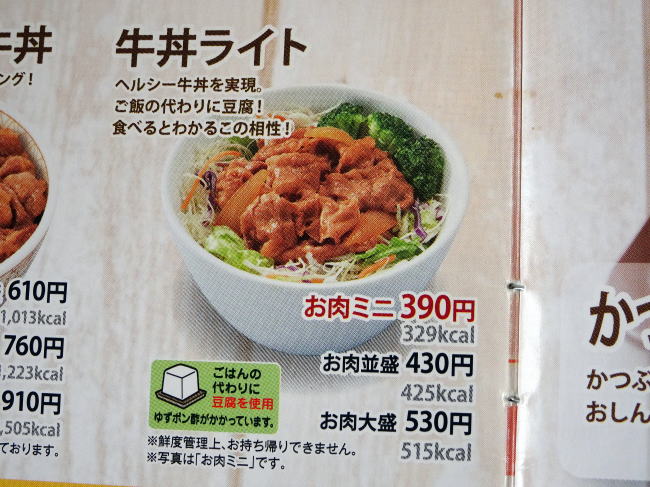 牛丼ライトとは、簡単に言うと牛丼のゴハンが豆腐に代わったものです。