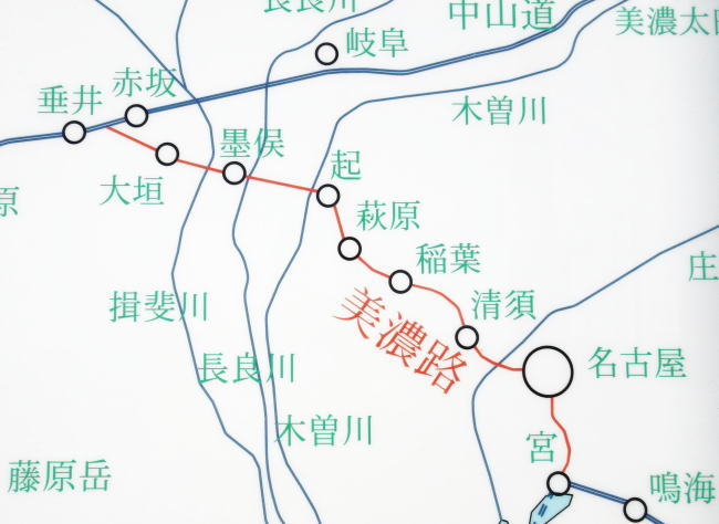 美濃路(みのじ)とは、東海道と中山道をつないだ街道です。脇街道(わきかいどう)、脇往還(わきおうかん)とも。美濃路には以下の9つの宿場がありました。