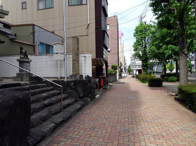 この2つの石碑は22号線を金山駅に歩いて左側にあります。