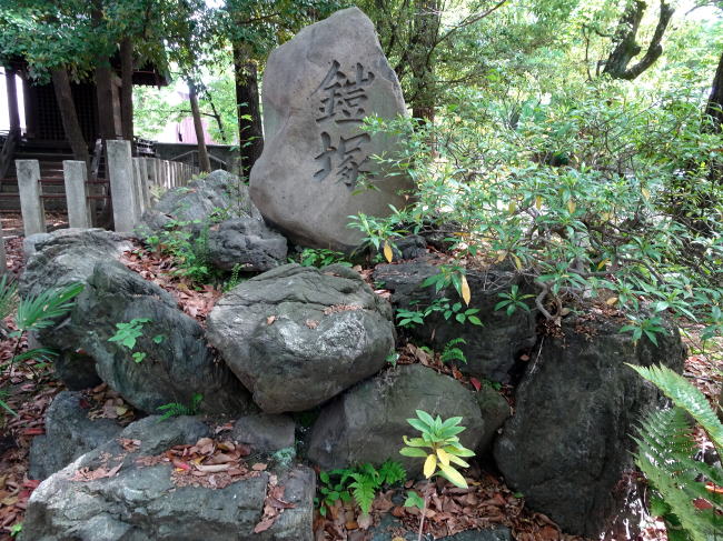 本殿の西側に源為朝が使用していた武具を治めたといわれる、鎧塚があります。