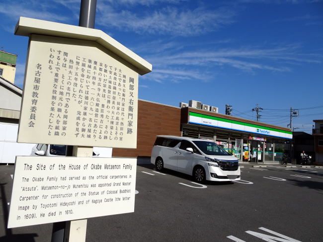 国道沿いの左手にコンビニ・ファミマがありますが、駐車場に看板が建っており、それを読んでみると岡部又右衛門家跡と書いてあります。