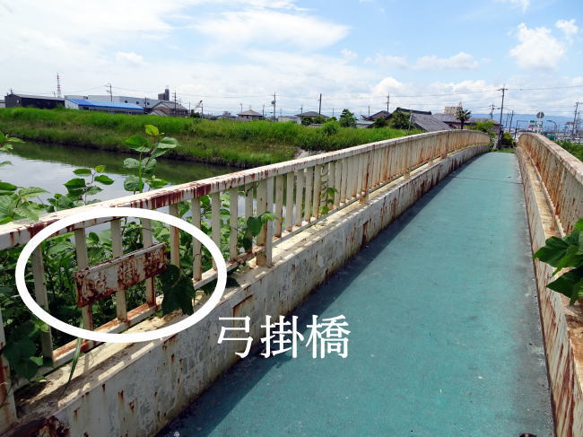 下田橋に架かる歩道橋をよく見てみると弓掛橋とあります。