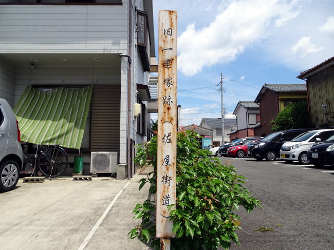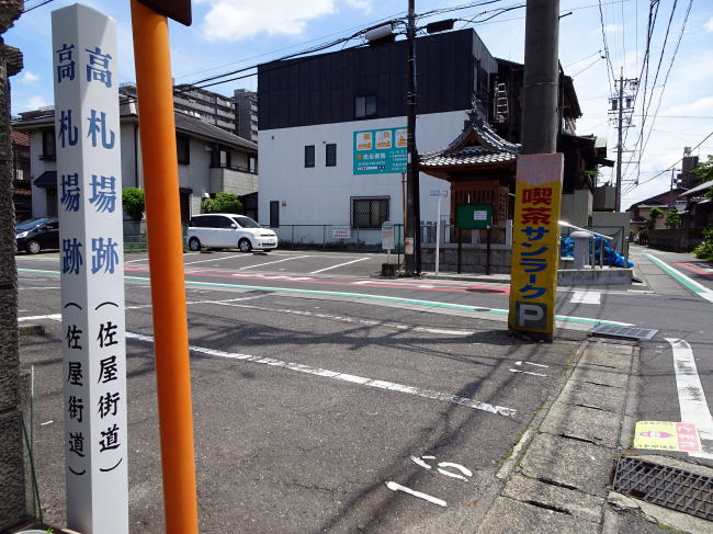 佐屋街道は名古屋市から次なる海部郡大治町(おおはるちょう)へ。砂子高越にあるカフェドサンラークという喫茶店の駐車場前に高札場跡がありました。