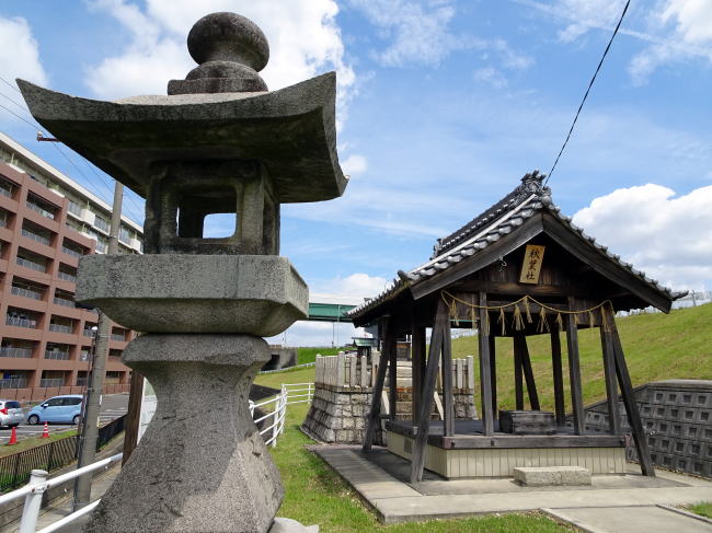 万場橋を渡ると秋葉神社があります。この秋葉神社はかつて渡船場にあり、その渡船場は現在秋葉神社がある場所より南に100mくらい離れた場所です。