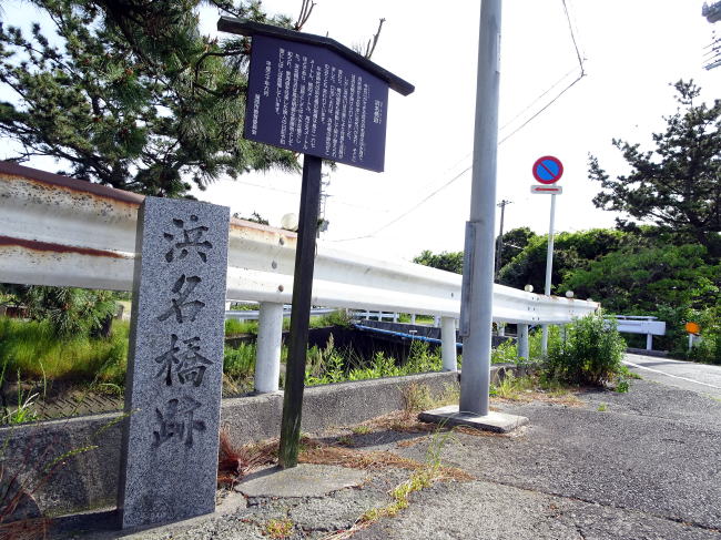 災害後、浜名橋の位置もよくわからなくなりましたが、現在石碑の建つ場所にあったのではないかと思われます。