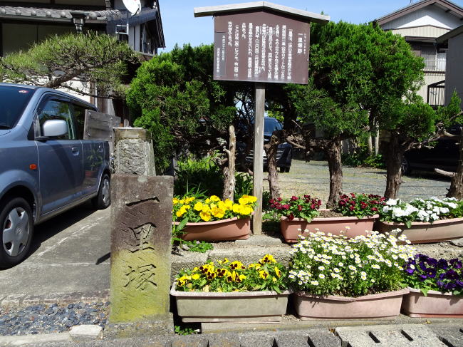 江戸・日本橋からから数えて69里目の一里塚があった場所です。現在は石碑と案内看板が建つのみ。